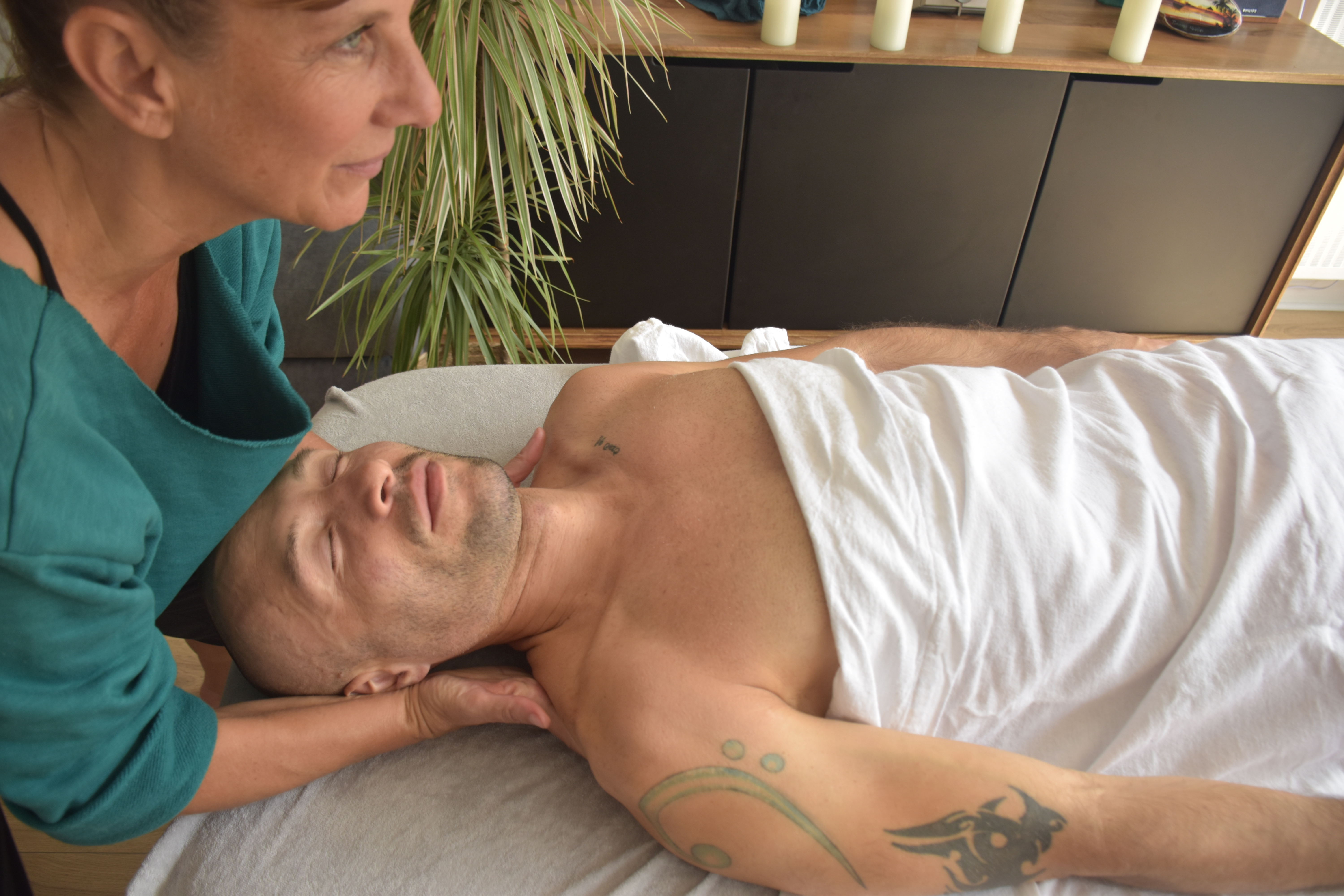 Après une prise de contact en douceur sur le drap, le massage peut commencer et chaque ségment de votre corps sera alors découvert tour à tour, préservant ainsi votre intimité et procurant une douce chaleur.